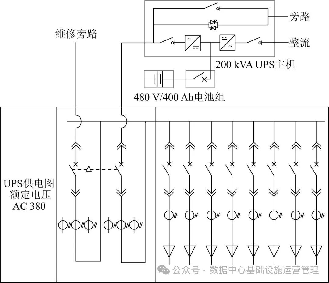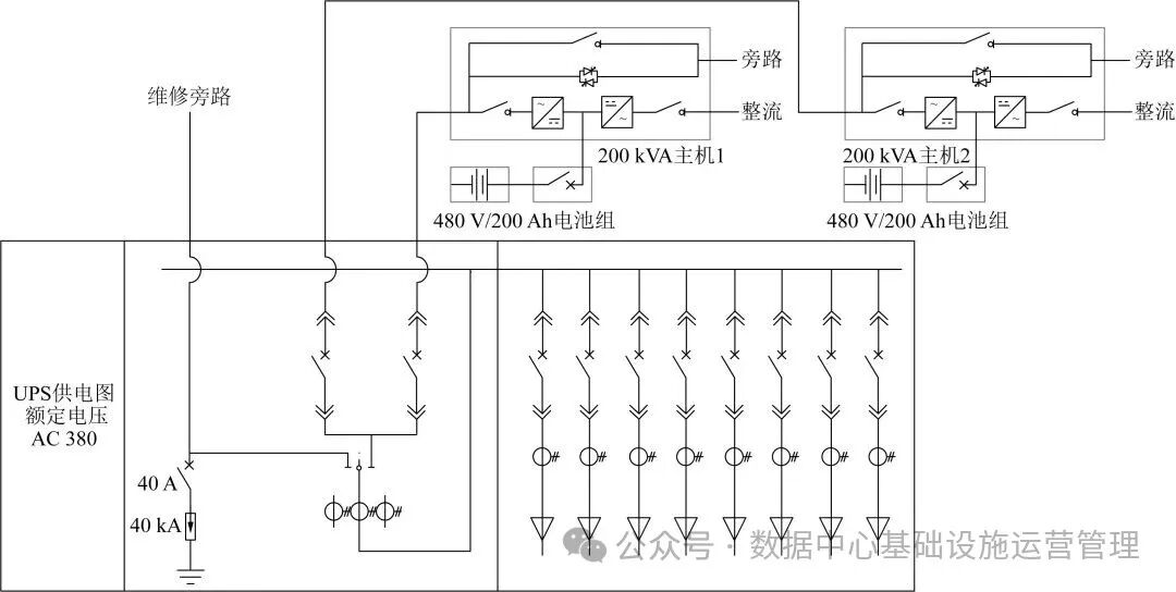kW,配置2对200 kVA UPS,每对UPS为1套系统,输出功率为288 kW。